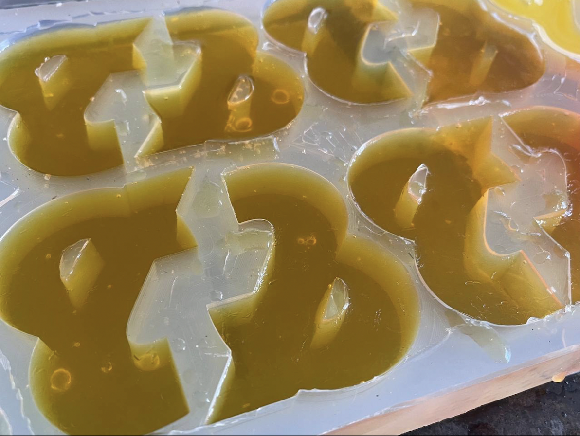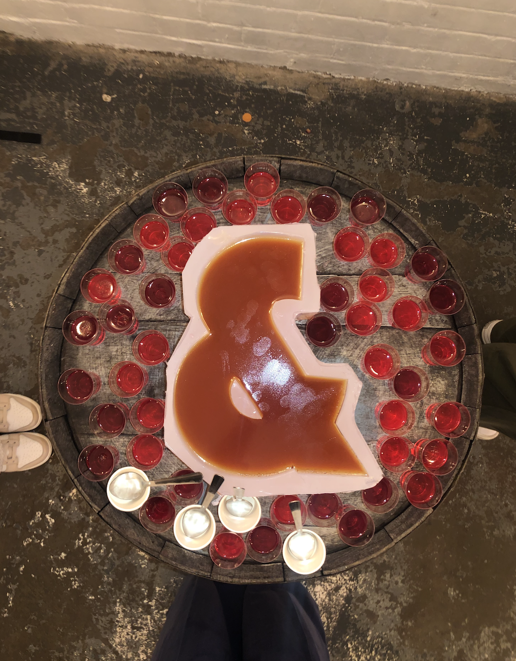 As well as this - me and my classmate were in charge of creating an & shaped jelly for our opening night and vodka jelly shots to go alongside as a bit of a fun project to run alongside the setup of the degree show. We began by creating a 3D dxf file based on our degree show logo &, after this the 3D Staff created us a food grade silicone mould from the dxf file, and then we began testing the jelly to vodka to gelatin leaf ratios until we got the balance right.