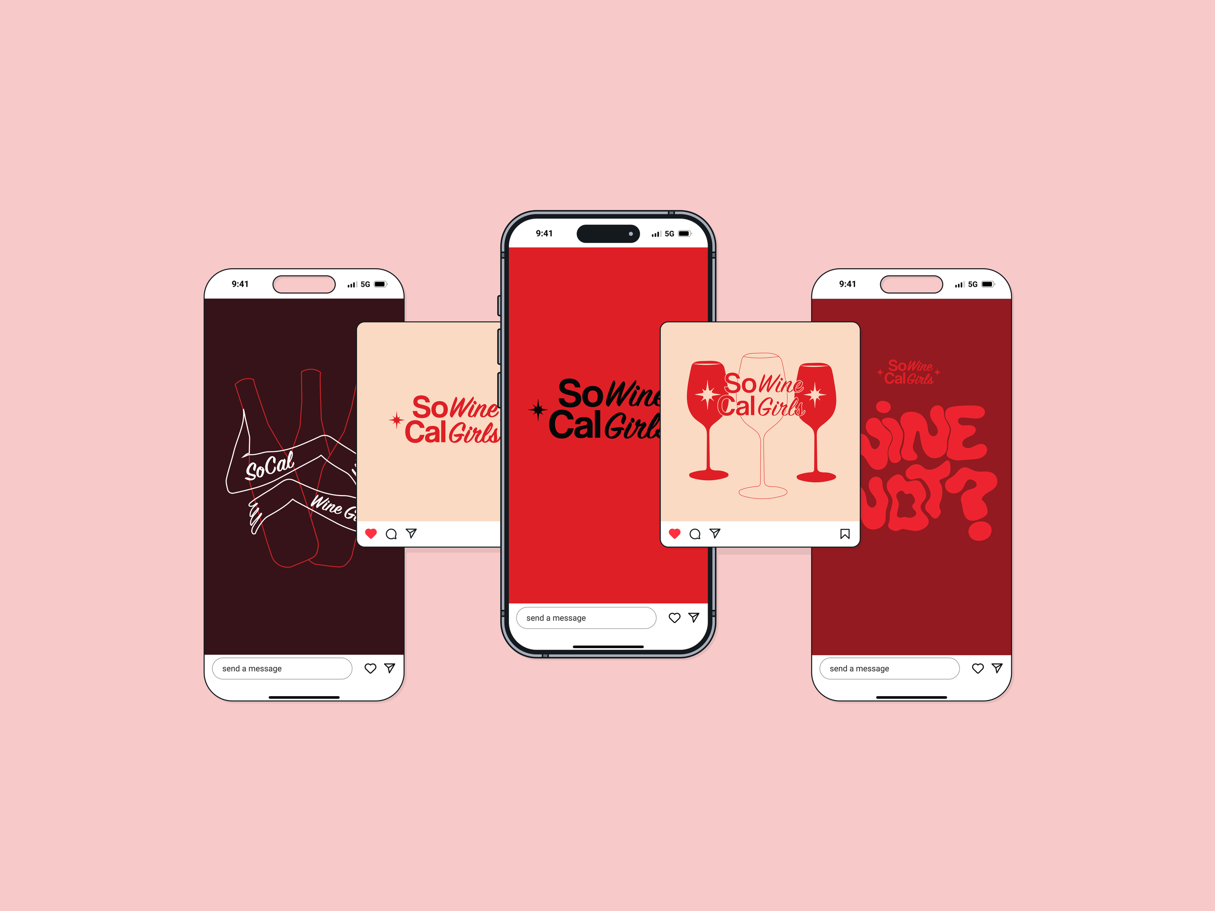 SoCal is a new online wine community that bring like-minded women together to create lasting friendships and who host in person wine tasting meetups. They required a logo, colour palette and social media direction.
